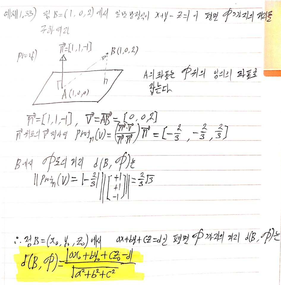$\therefore$ $\mathbb R^3$에 있는 평면의 방정식에 대한 벡터형은 ![]()