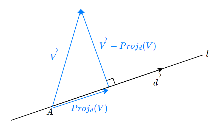 $\overrightarrow p$는 $l$위의 임의의 점, $\hat d$ 는 $l$에 대한 방향벡터이다