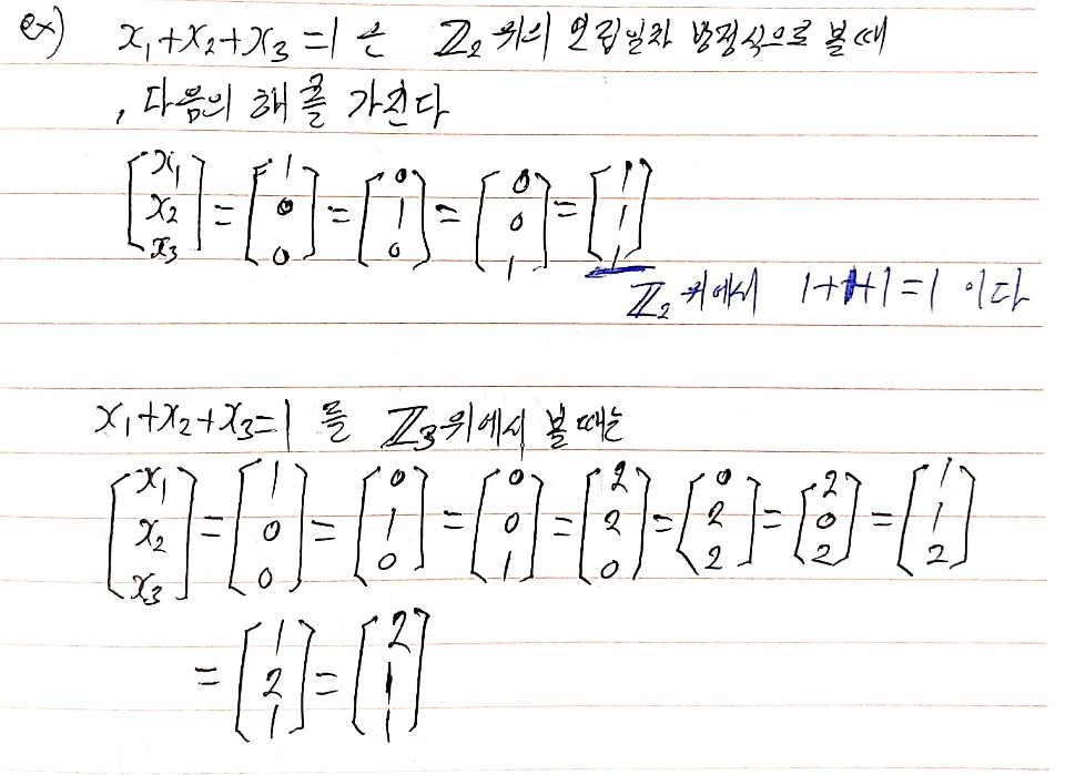 이런경우를 $\mathbb Z_p$ 위의 연립 일차 방정식 이라 한다.