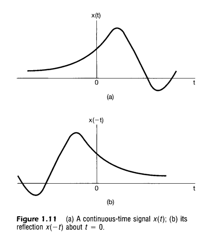 $\displaystyle x(t) \rightarrow x(-t), x[n] \rightarrow x[-n]$