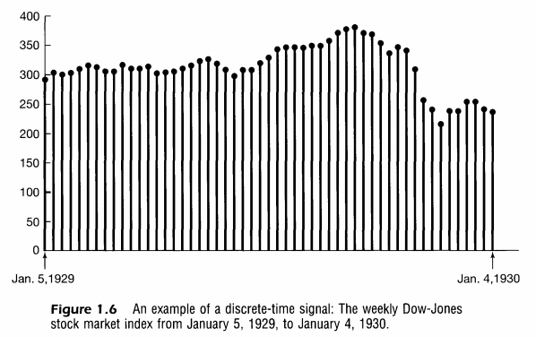 | 독립변수(t)가 연속적이다 ($t \in \mathbb R$) | 독립변수(n)가 이산적이다.($n \in \mathbb Z$) |