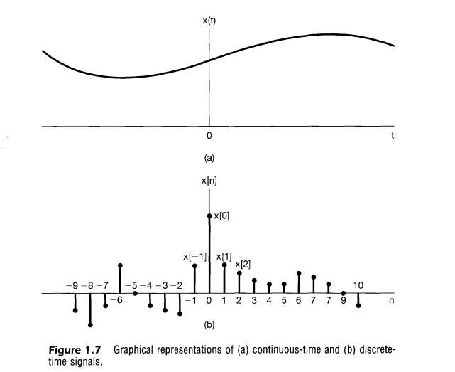 -우리는 연속시간 신호(continuous time signal; cts)와 이산시간 신호(discrete time signal; dts) 라는 기본적인 두가지 형태의 신호를 고려할것이다.