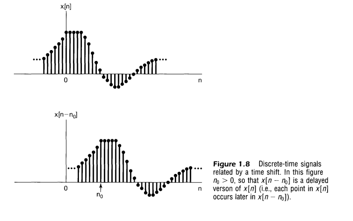 $\displaystyle x[n] \rightarrow x[n-n_0]$