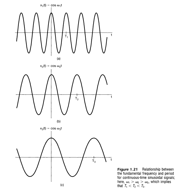 $e^{j(w_0+2\pi)t}=e^{jw_0t}e^{j2\pi t}, (t \in \mathbb R)$ t가 실수이므로 정현파 신호의 형태를 그대로 가져올 수 있음을 확인 할 수 있다. |