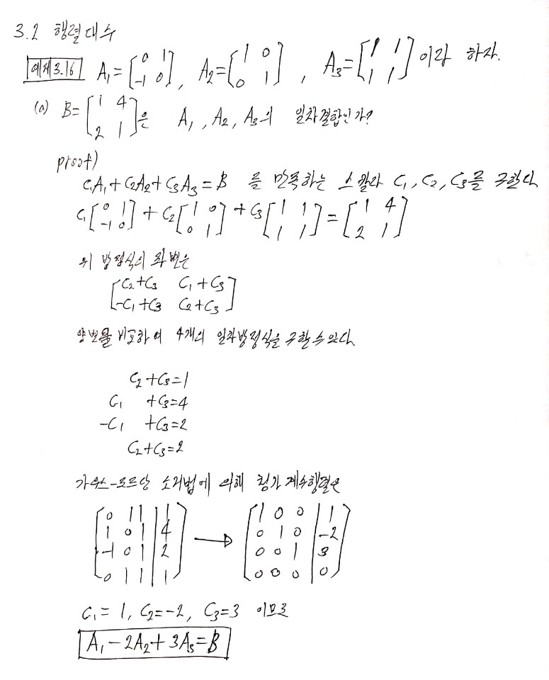 를 일차결합이라 하고 $c_1,c_2,\cdots,c_k$를 계수(codefficient)라 한다.