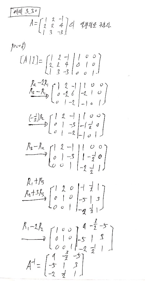 \end{bmatrix}$ 은 $I$를 $3R_2$ 한것이다.