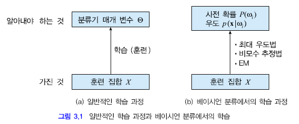 $\circ$ 2장에서 사전학률과 우도를 미리 알고있다 가정하고 베이시언 분류기를 만들었으나, 3장에서는 이득 활률을 어떻게 추저할지에 집중한다.