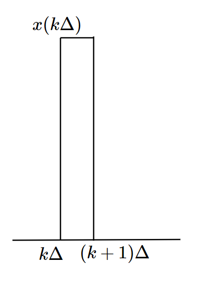 $$ x(t)=\lim_{\Delta \rightarrow 0} \sum_{k=-\infty}^{+\infty}x(k\Delta)\delta_\Delta(n-k\Delta)\Delta$$