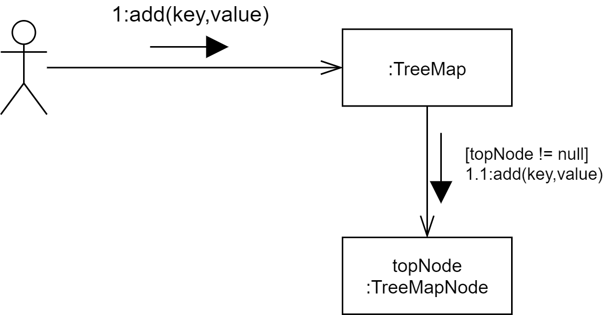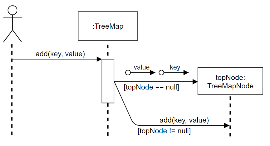 - 왼쪽의 stick figure는 알수없는 호출자를 의미한다. 이 호출자는 $TreeMap$ 오브젝트 상의 $add$ 메서드의 호출을 원한다.