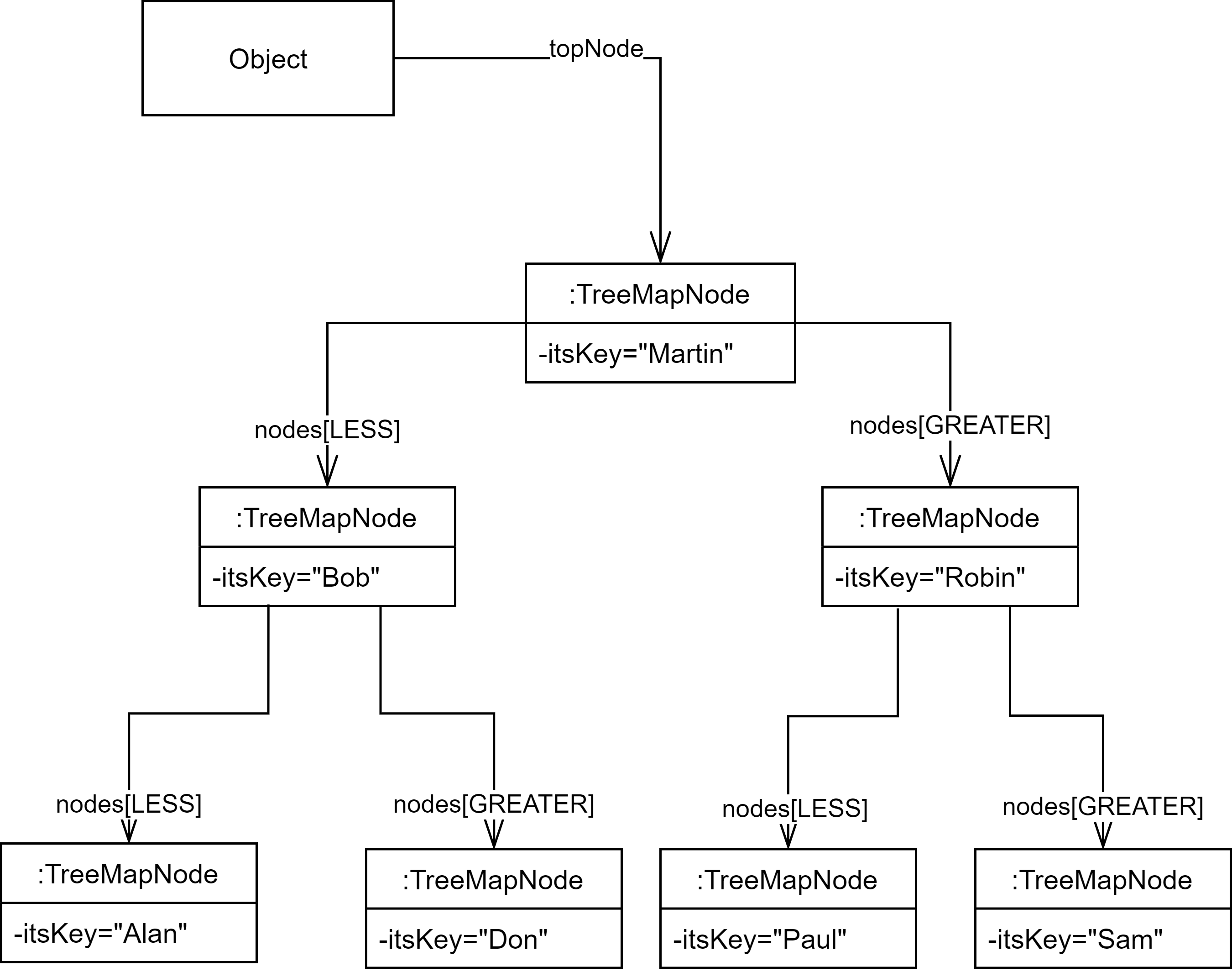 $TreeMapNode$는 2개의 다른 $TreeMapNode$ instance를 nodes라는 이름의 컨테이너를 통해 참조하고있으며 $itsKey$와 $itsValue$라는 이름의 2개의 다른 인스턴스를 참조하고있다.