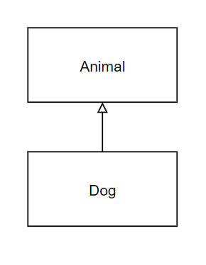 위 그림은 Animal과 Dog 2개의 존재가 일반화(generalization) 관계로 연결되었음을 묘사한다.