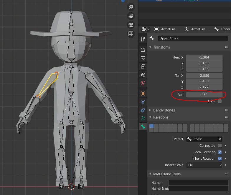 2. edit 모드에서 한쪽 관절의 roll 값이 $x$ 이면 반대쪽 관절은 $-x$ 값이어야 한다.