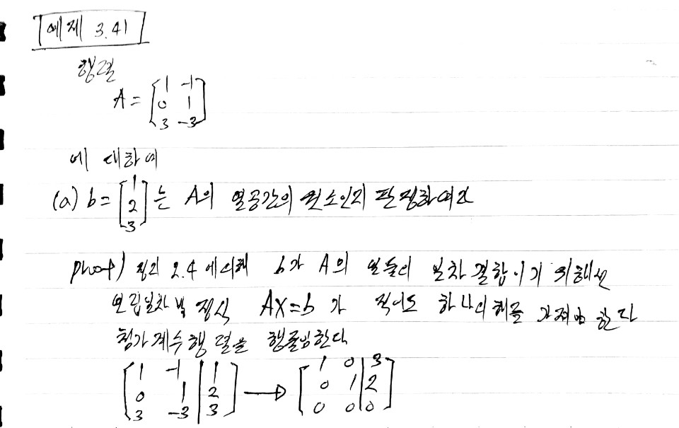 2. $A$의 열공간(col space)는 $A$의 열에 의해 생성된 $\mathbb R^m$의 부분공간 $col(A)$이다.