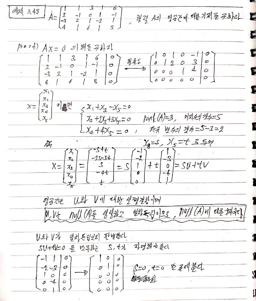 행렬 $A$의 영공간(null space)에 대한 기저 구하기