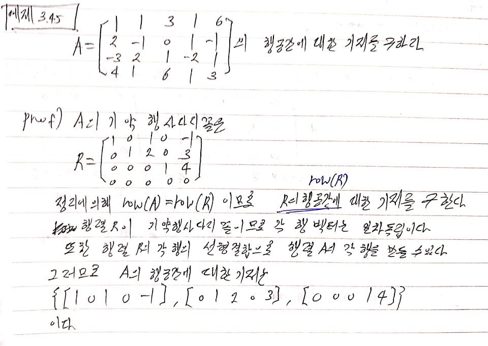 $U$가 $A$의 행 사다리꼴이면, $U$의 영이아닌 행벡터는 $row(A)$에 대한 기저이다.