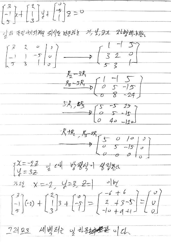 2) 일차독립이다.
