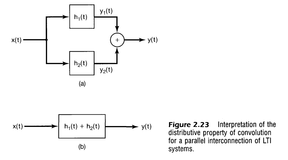$$x(t)*(h_1(t)+h_2(t))=x(t)*h_1(t)+x(t)*h_2(t)$$