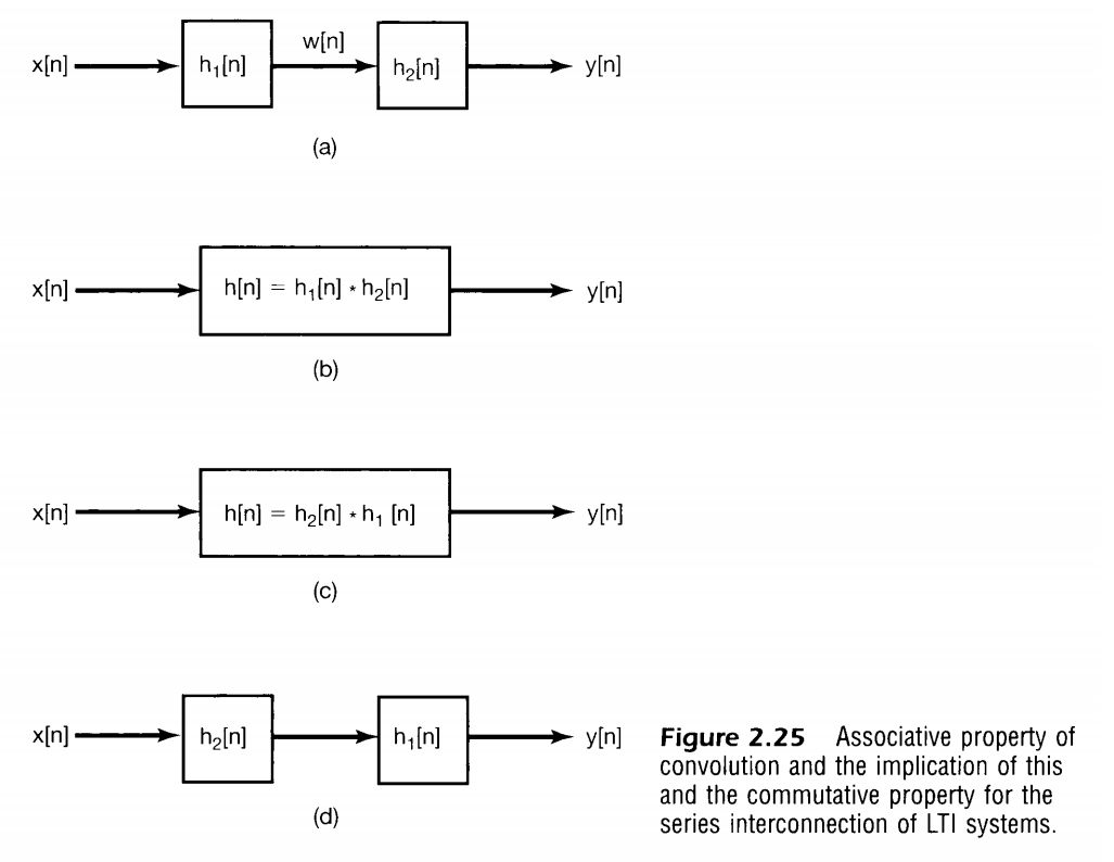 직렬로 연결된 LTI시스템들의 동작에서 신호를 컨볼루션 하는 순서는 문제 될 것 없다.