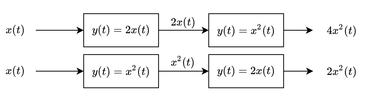 가령 2개의 비선형적인 시스템들이 직렬로 연결된 경우 순서에 따라서 결과가 변한다.