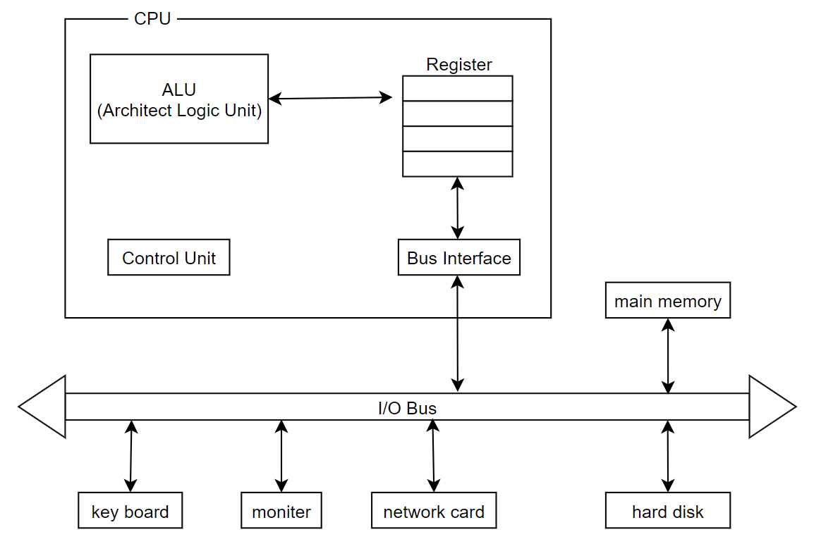 $\bullet$ CPU 내에는 I/O bus의 통신 방식을 이해하는 BUS interface가 있다.