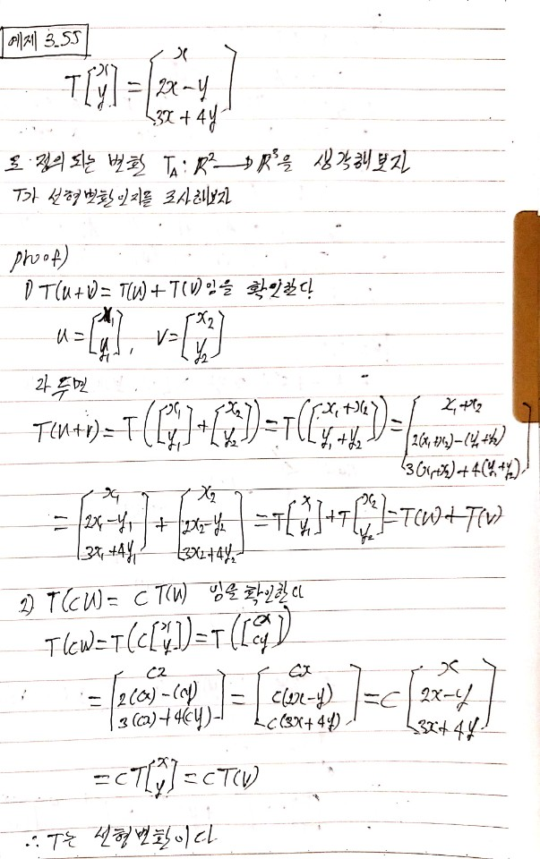 이다. 그러므로 행렬변환 $T_A$는 선형변환이다.