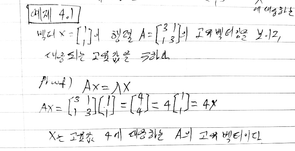 이때, 벡터 $X$는 고윳값 $\lambda$에 대응하는 고유벡터(eigenvector)라 한다.
