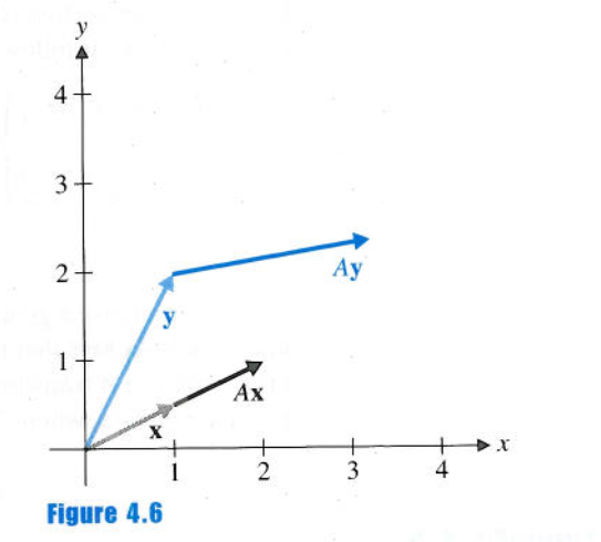 위 그림에서 $X$는 $A$의 eigenvector이지만 $y$는 고유벡터가 아니다.