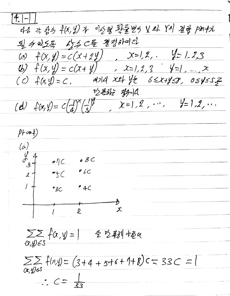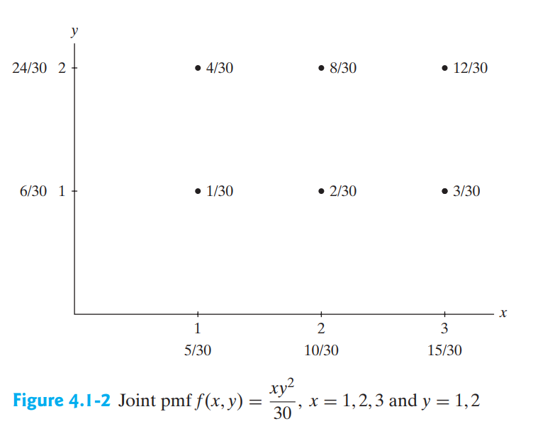 (c) $\displaystyle P[(X,Y) \in A] = \underset{(x,y) \in A}{\sum \sum}f(x,y)$, 여기서 $A$는 공간 $S$의 부분집합이다.