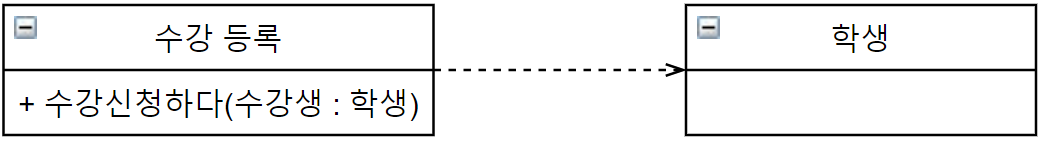 수강등록 클래스는 학생 클래스를 "사용" 한다.