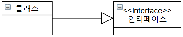 -한 클래스가 다른 클래스 또는 인터페이스(interface)의 명세(specification)를 구현하는 관계를 표현함