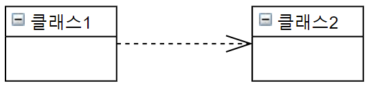 --하나의 클래스가 다른 클래스를 오퍼레이션의 매개변수로 지정함