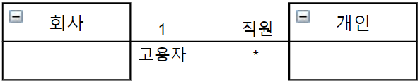 역할이름 : "고용하다"라는 관계에서 회사 입장에서는 고용자의 역할을 하며 개인 입장에서는 직원의 역할을 한다.