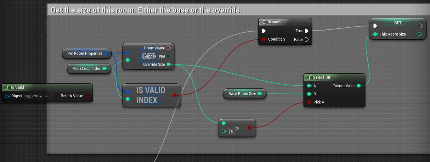 즉, 0번 branch에서 하는 일은 MainLoopIndex가 배열 크기내에 있을때만 ThisRoomSize를 PerRoomProperties[MainLoopIndex].OverrideSize 로 초기화한다.