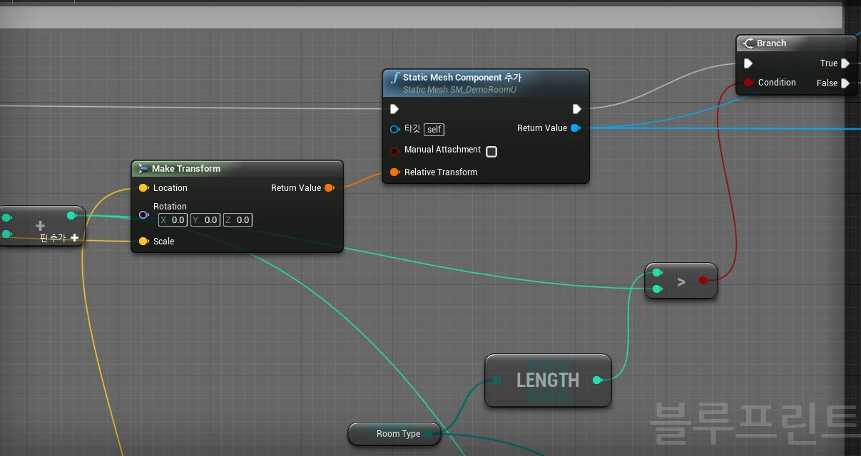 그리고 Static mesh Component를 이용하여 해당위치에 천장 mesh를 만든다.
