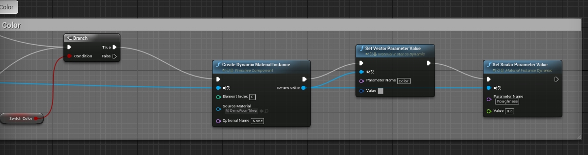 Set Scalar Parameter Value에서 빛반사 정도를 선택하며 0에 가까울수록 반짝이고 1에 가까울수록 재질이 흐려진다.