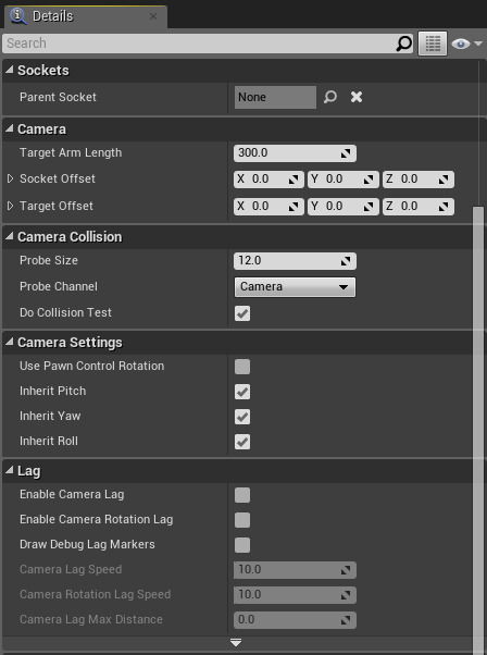해제하면 spring arm의 회전이 AddControllerYawInput과 AddControllerPitchInput에 무관하게 된다.