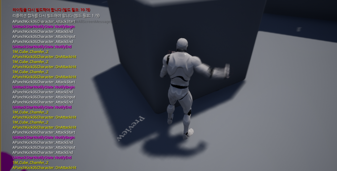 먼저 주의사항을 알아야한다 프로젝트를 실행하여 Enemy를 타격해보면 아래 사진처럼 주먹을 한번만 휘둘러도OnAttackHit가 연달아 몇번씩 발생하는것을 볼 수 있다.