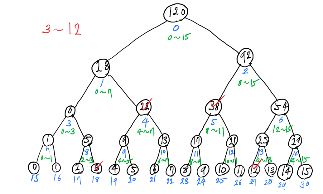 배열의 길이가 6일때 세그먼트트리의 구조는 아래와 같다.