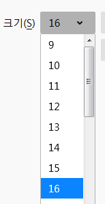 이제 웹브라우저의 설정창에서 글꼴의 크기를 줄여보겠다.