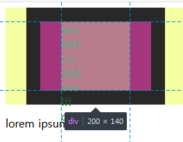 박스내 문자들이 밖으로 나와서 계속 출력되고 있으며 lorem ipsum은 원래 자신의 자리를 차지하면서