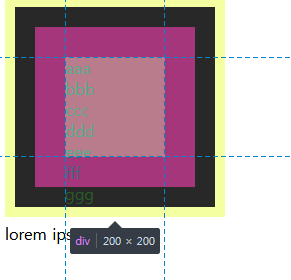 위코드를 실행하면 div태그의 너비와 높이가 100픽셀로 지정되었음을 확인 가능하다.
