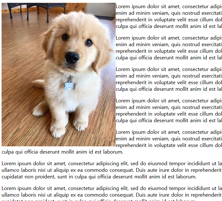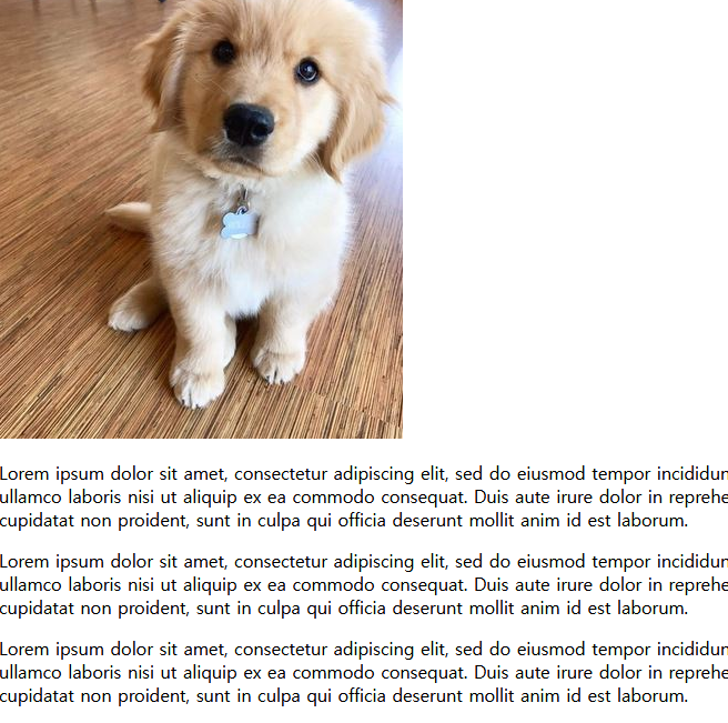 lorem ipsum이 있는 p태그를 더 늘려본 결과 그림이 글 위에 부유하고 있는것을 확인 할 수 있다.