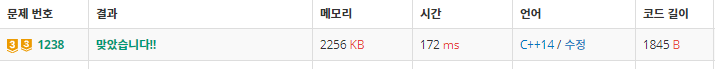 똑같이 C++로 푼 사람들과 랭킹을 비교해도 중하위권이다.
