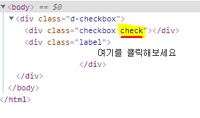 웹브라우저로 실행해보면 check상태와 uncheck 상태일때 html코드가 실시간으로 변하는것을 확인 할 수 있다,