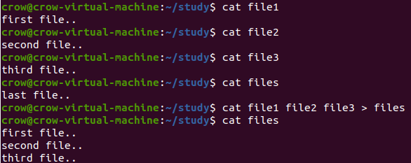 file1, file2, file3의 내용을 합처서 files에 덮어 씌웠음을 확인 가능