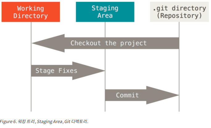 - Git 디렉토리, 워킹 트리, Staging Area 이렇게 세가지 단계를 이해해해보자.