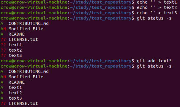 - 와일드 카드 기능을 통해 한번에 여러개의 파일을 새로 추적 가능하다.