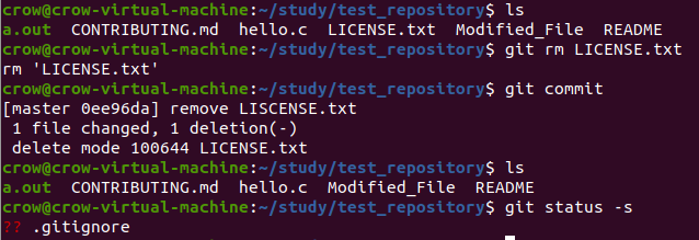 - 실제 파일을 삭제하더라도 git에 의해 관리받는 리스트에서는 지워지지 않는다.