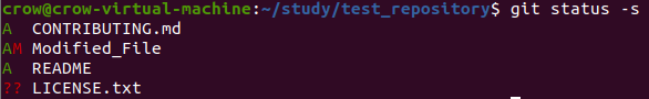 - -s 또는 --short 옵션으로 변경상태를 짤막하게 확인 할 수 있다.