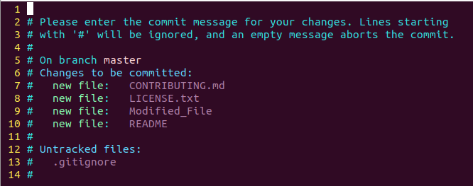 - 맨 첫줄은 비워저있고, 둘째줄부터 git status 명령의 결과가 채워진다.